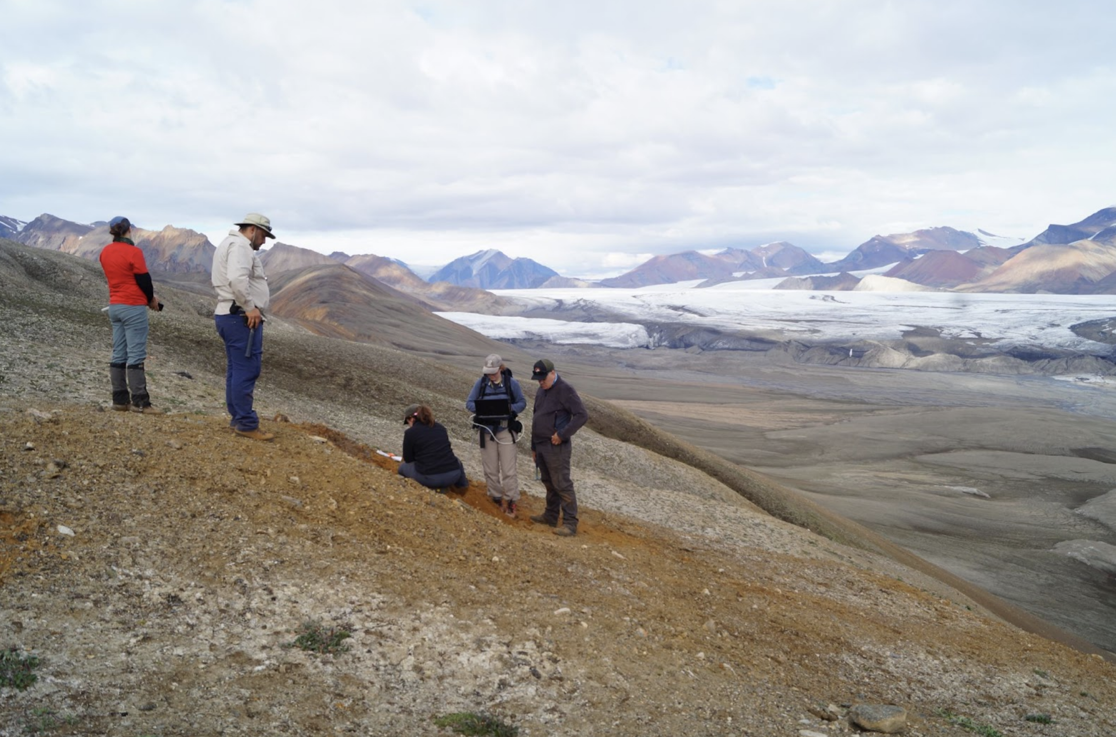You can actually find gossans in lots of places on Earth if the right conditions are present. But the ones in permafrost and polar deserts, like in the Arctic, are thought to be better environmental analogs for Mars, which is dry and cold today. That was the first reason to go there. What led us to Axel Heiberg Island specifically was the high density of gossans. On top of that, the presence of several gossans close to the McGill Arctic Research Station at Expedition Fiord, where we set up camp, made fieldwork much more feasible and allowed us to sample several sites.